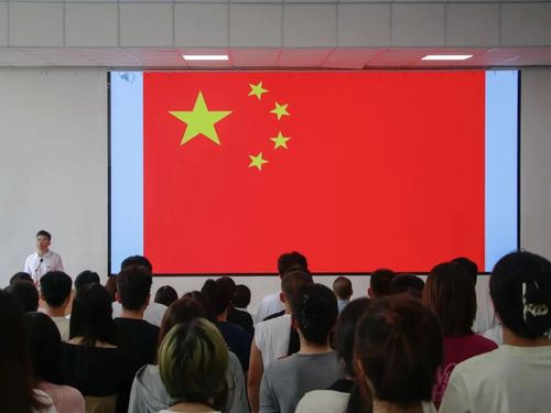 会议第一项,奏唱国歌,全院师生端庄肃立,面向国旗,齐声唱响国歌。