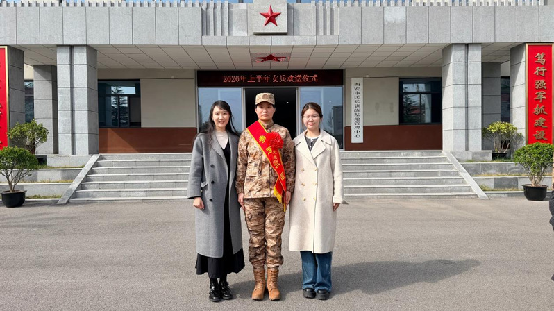 3月19日下午,学校举行2026年春季应征入伍女兵欢送仪式,学工部、武装部部长姬国斌,武装部副部长王恩成,学院党委副书记王妍婷,2025级辅导员王雨琪前往西安市民兵训练基地欢送博彩网站: 主页 应征入伍女兵——2025级本科生张鑫。
